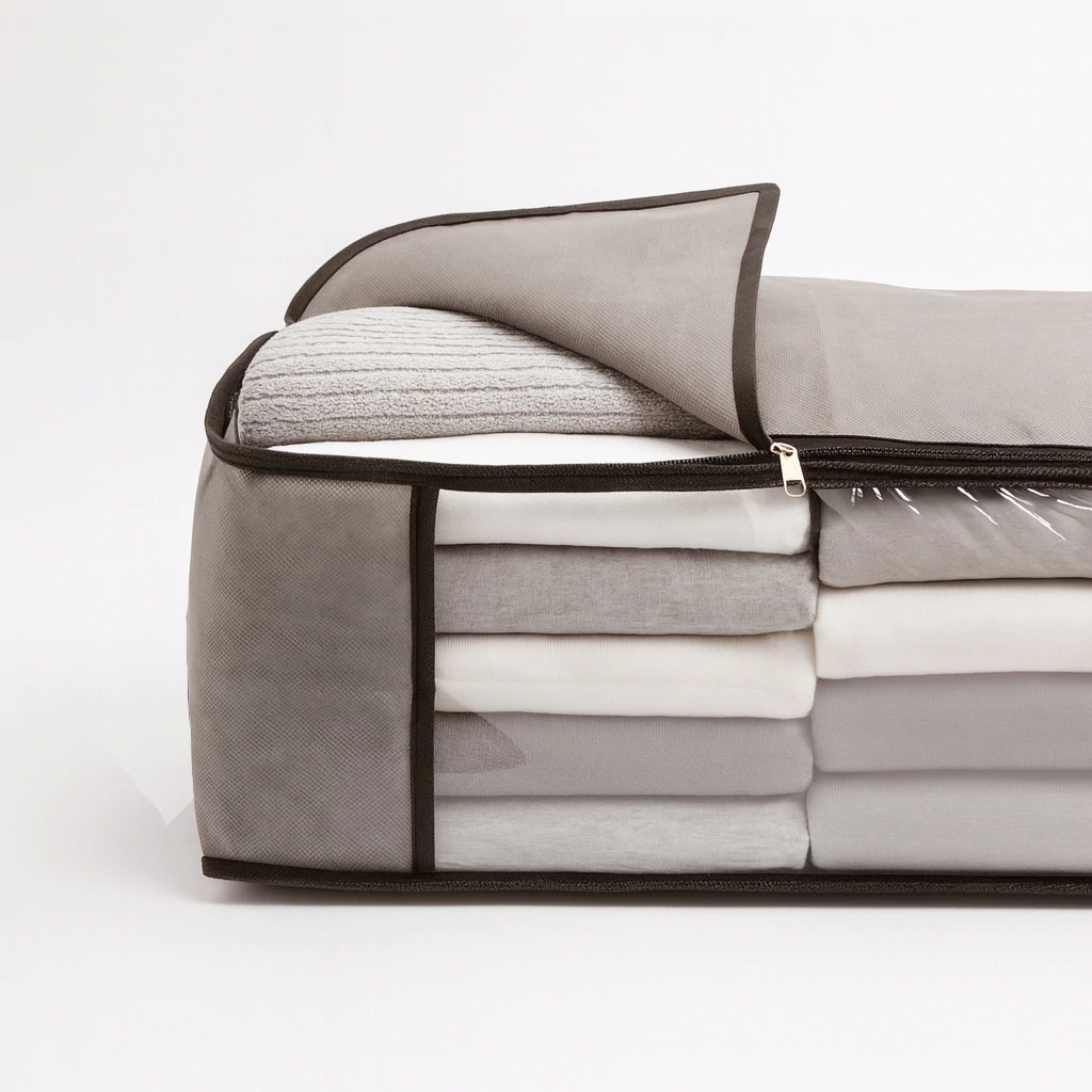 Este organizador plegable con tapa transparente y cierre reforzado es ideal para guardar ropa, frazadas, acolchados, juguetes, accesorios o artículos de electrónica.